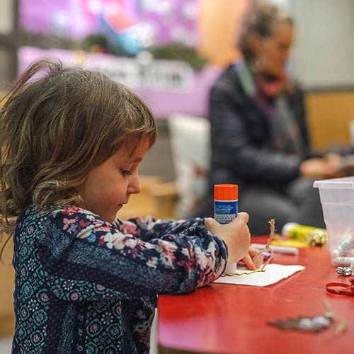 | Decorate a free wooden holiday ornament to take home and hang on your Christmas tree. |
